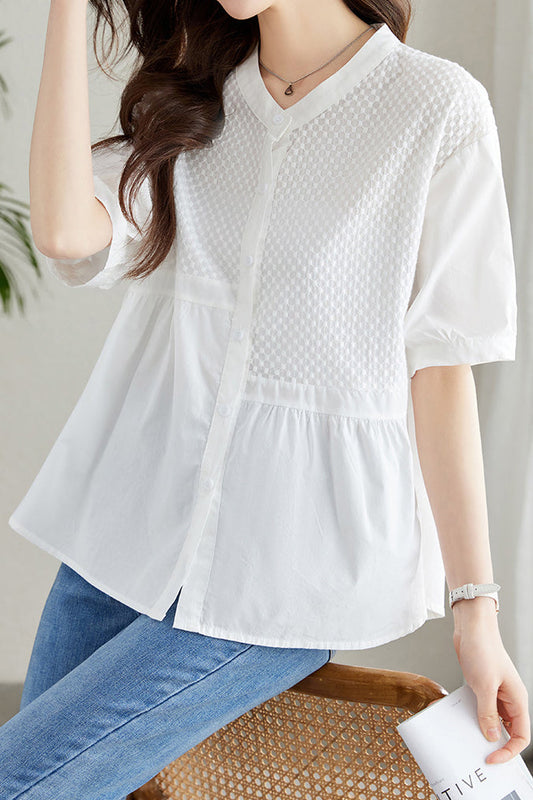 Fabric type: Cotton 100%Product details: Shirt, hollow - out design at the cuffs and front placket, three...