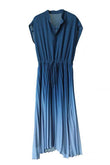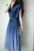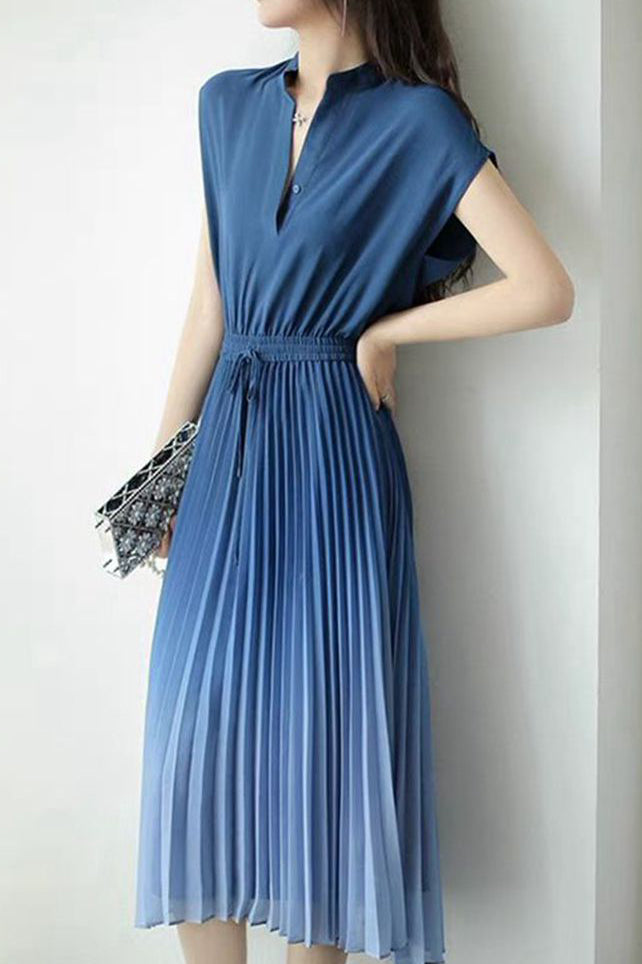 Feature:Solid color, keyhole neck, short sleeves, elastic at waist (stretchable), knee length, French sleeves, front buttons, pleats, ombre design, lined (only lower half), mixed materials