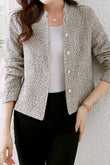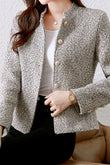 Feature:Nail color, front opening button, tweed material, with shoulder pads, button decoration at cuffs, long sleeves