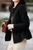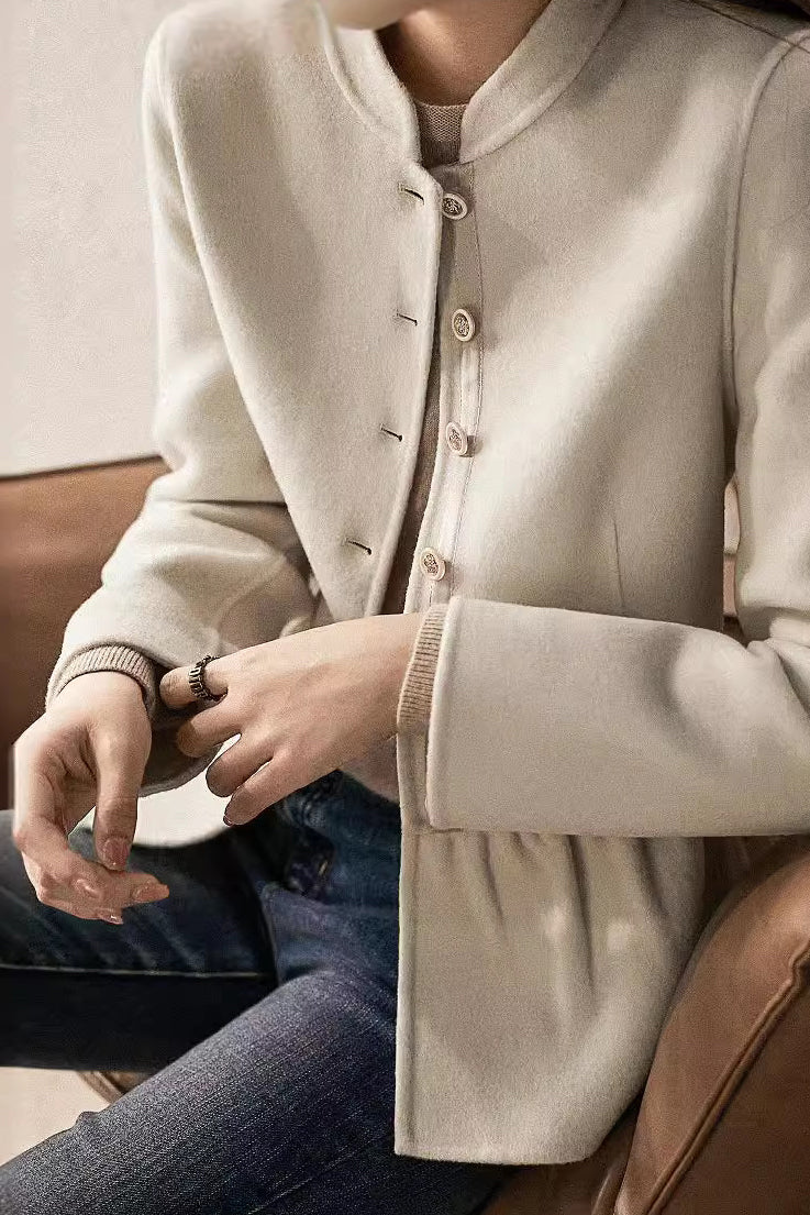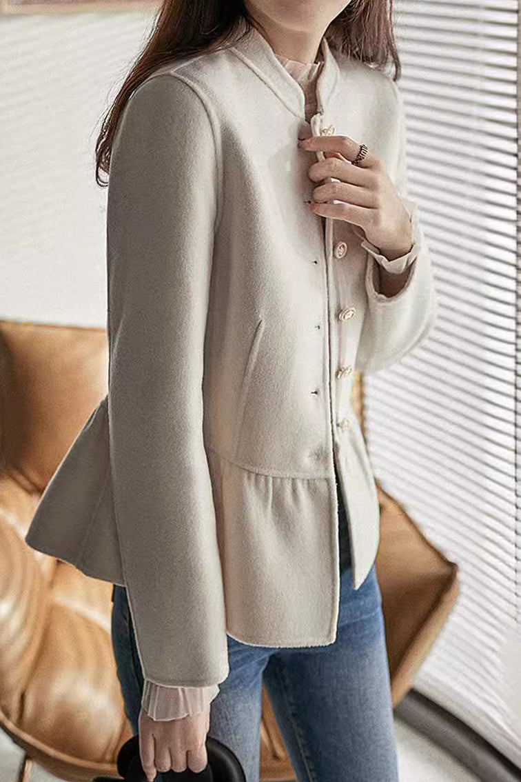 Feature:Nail color, front opening button, gathers at waist, slightly flared hem, long sleeves, eco cashmere, solid color