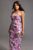 Eugenia Flower Sequins Strapless Mesh Dress - Purple