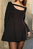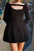 Simple Retro Square Collar Slim-fit High Waist All-match Black Backless Dress