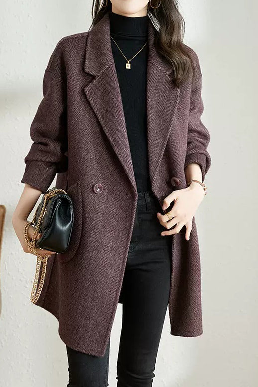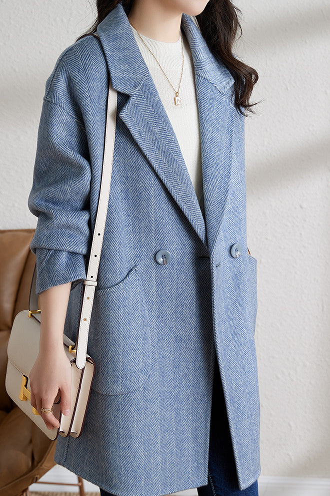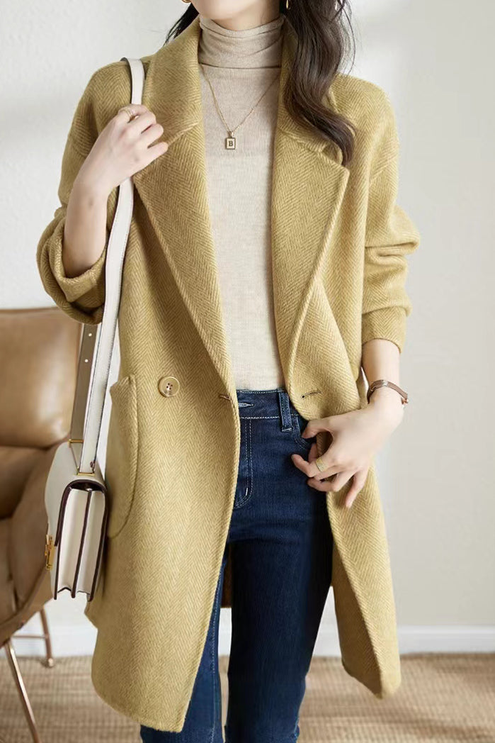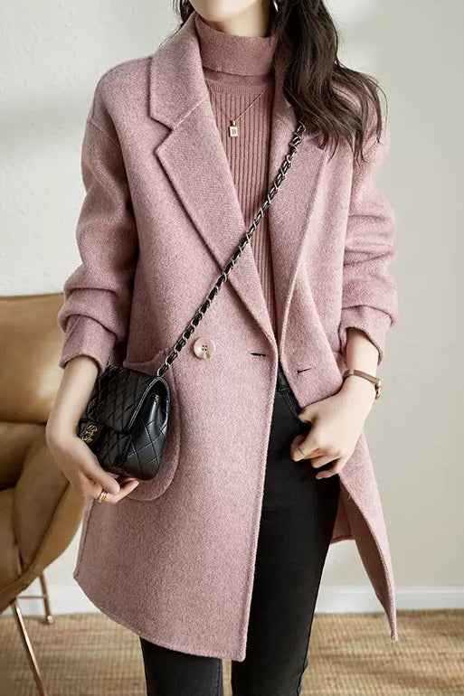 Feature:Lined, suit collar, open collar, single button, with side pockets, long sleeves