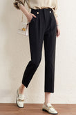 Product details:Straight Leg Pants, Metal Buckle Decoration, Side Pockets