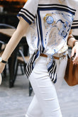 Product details:T-Shirt, Abstract Print Pattern, Round Neck, Asymmetrical Hem