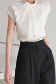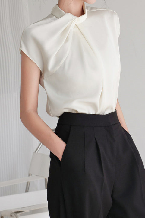 French Inspired Stand Collar Shirt with Twist Pleat Detail for Commuting