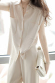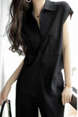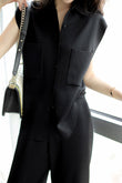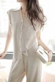 Product details:Set, V-Neck, Pocket Design on Chest, Full Placket with Single Row of Buttons(The size of the chest pocket is based on the actual item shown in the photo.)