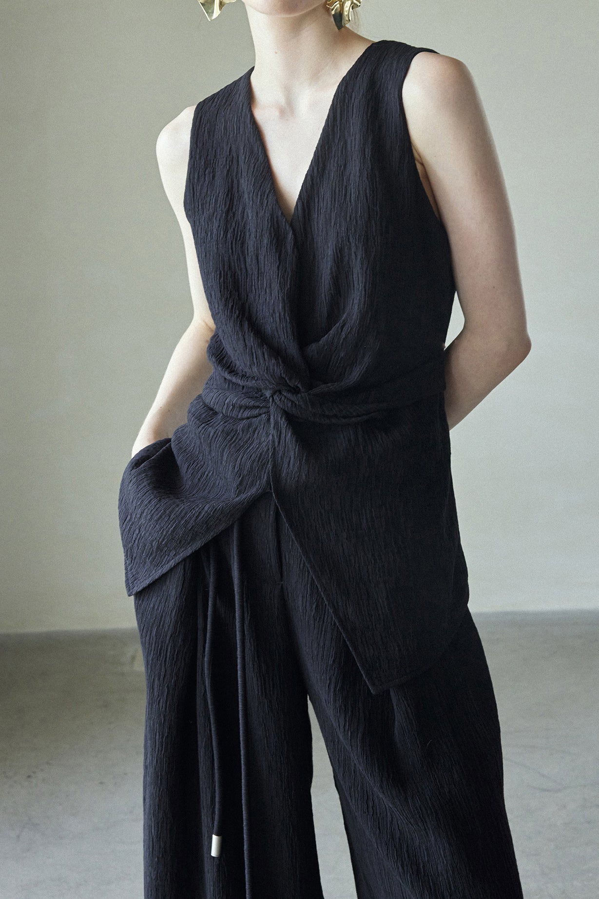 Product details:Set (Tank Top + Pants),Tank Top:V-Neck,With Lining,Twist Design,Hidden Zipper at Back,Waist with Tie Detail,Pants:With Lining,Zipper Fly with Snap Button,Waist with Tie Detail,Side Pocket