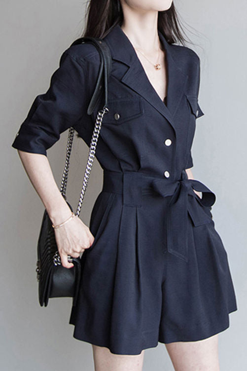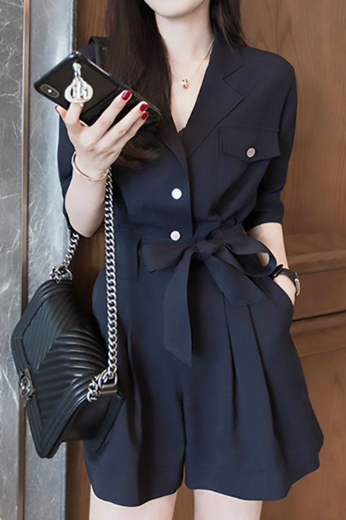 Product details:Casual Commuter Suit Jumpsuit,Lapel,Metal Button Accents,Chest Pocket Decoration