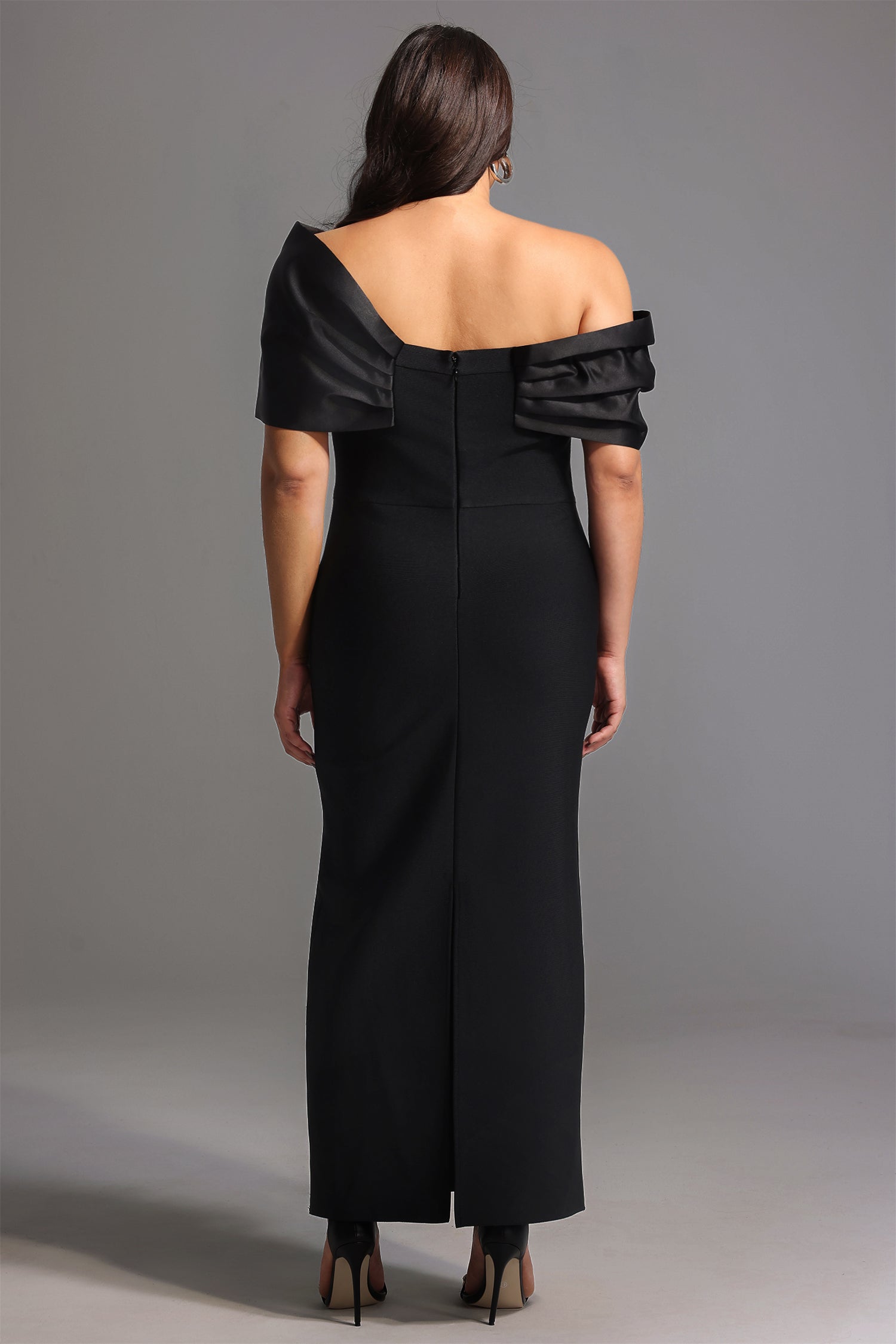 Palez Sleeveless One Shoulder Diamond Bow Bandage Maxi Dress