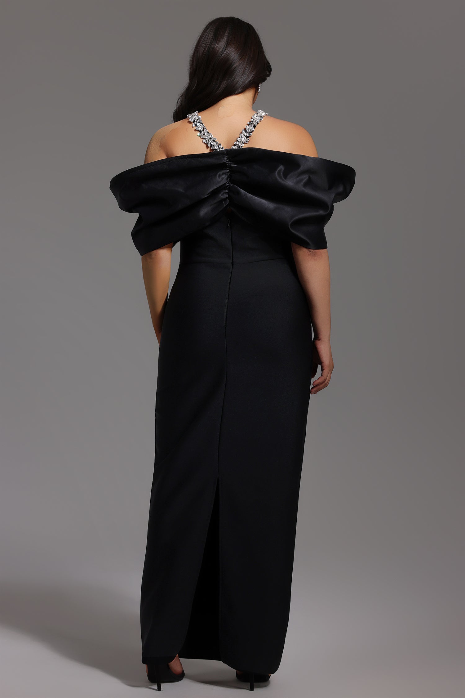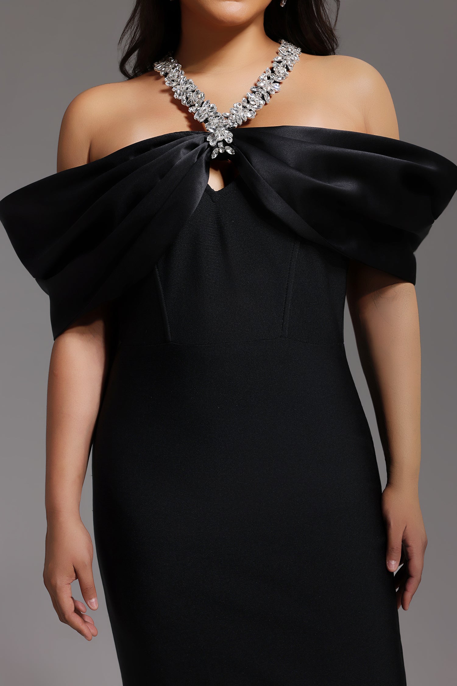 Sloan Halter Diamond Off-The-Shoulder Bandage Maxi Dress